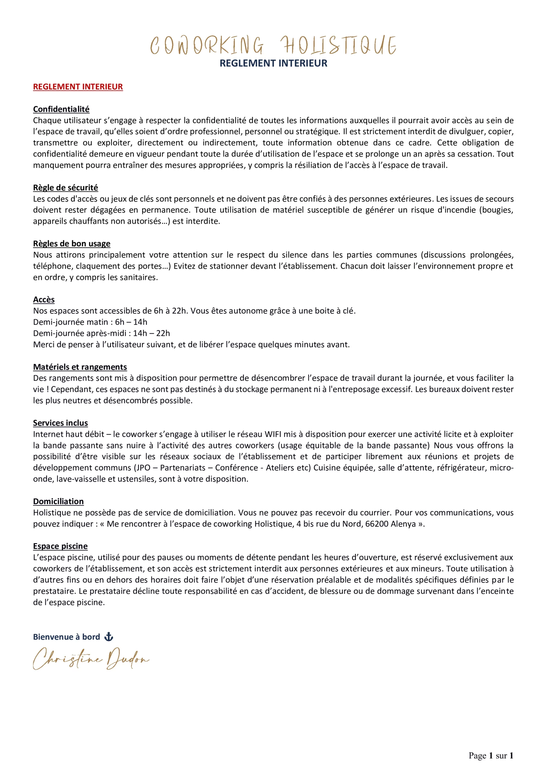 Un cadre commun pour un fonctionnement harmonieux du lieu